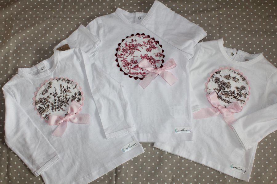 Sigo....para la tienda de Anna Muñoz, en Camas (Sevilla), fueron estas 3 camisetas de medallones de Toilé con sus tocaditos a juego para acompañar a unos pantalones confeccionados por ella.